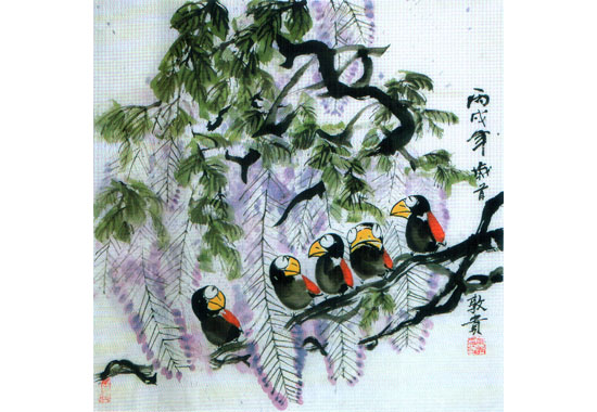 作品名称: 鸟语 作者: 柳敦贵 尺寸(cm): 68*68